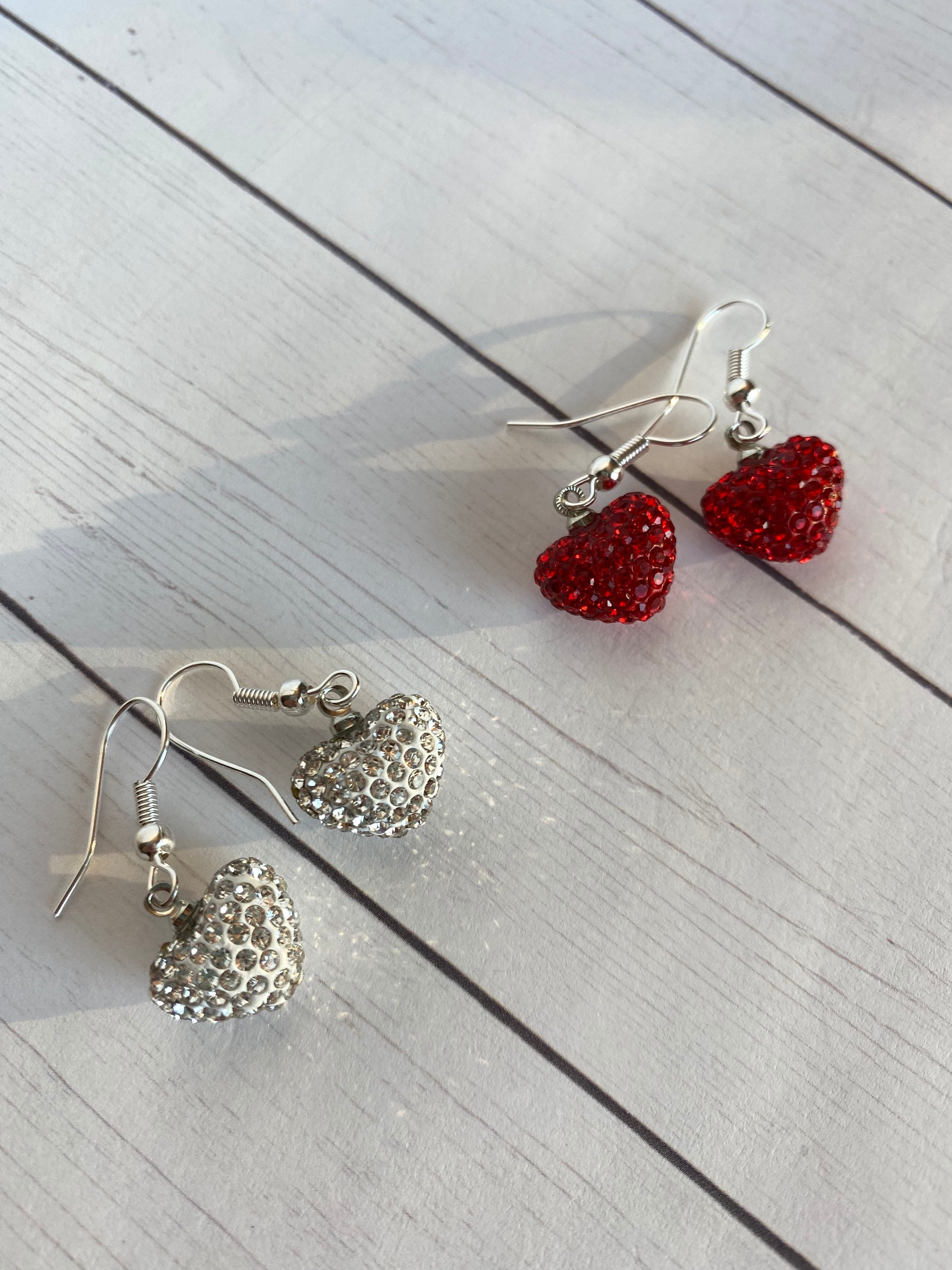 These earrings are made with silver colored findings and rhinestones. This pair of earrings would be perfect for Valentine’s Day. If you love them snatch them up before someone else does.